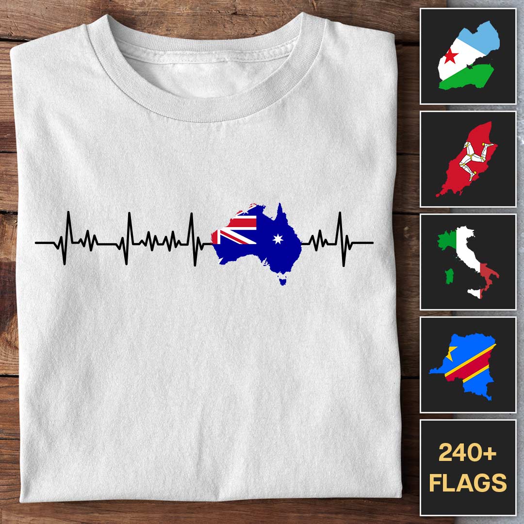 Wear your love for your country with pride with the Heartbeat of Nations customizable T-shirt. This design features a heartbeat graphic with the selected country flag embedded in the pulse line, symbolizing your deep connection to the nation(s) of your choice. Whether it’s one or two countries, this T-shirt is the perfect way to show where your heart beats strongest.